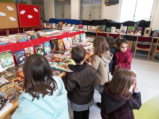 O Jardim de Infância do Granho veio visitar a "FEIRA do LIVRO" : |