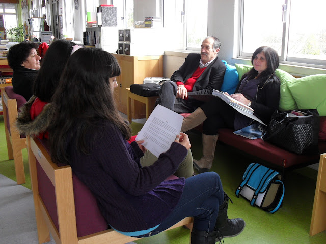 Na sala de professores, as profªs Emilia e Ana também quizeram ficar a saber mais sobre os Avieiros !