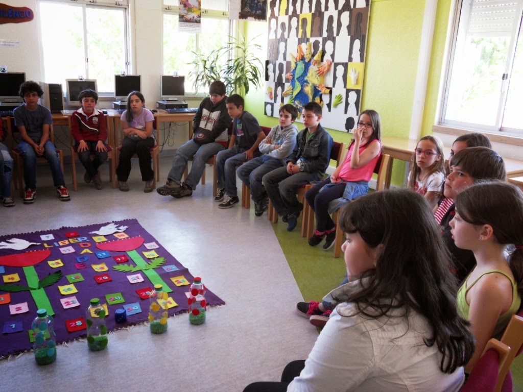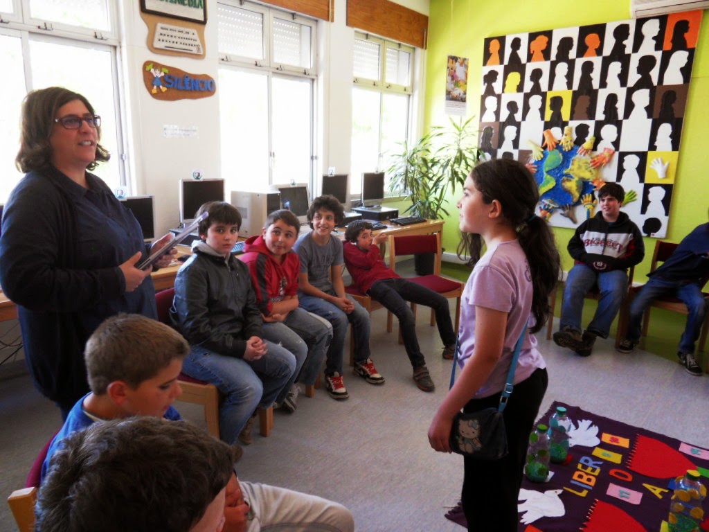 Recebemos a visita dos meninos do JI e 1º Ciclo do Granho com um conto de Ana Cristina Leonardo "Crispim, o pirata que tinha medo da água" in "Princesas, Príncipes, Fadas e Piratas com problemas", seguido de um jogo de exploração de leitura! Foi muito divertido!